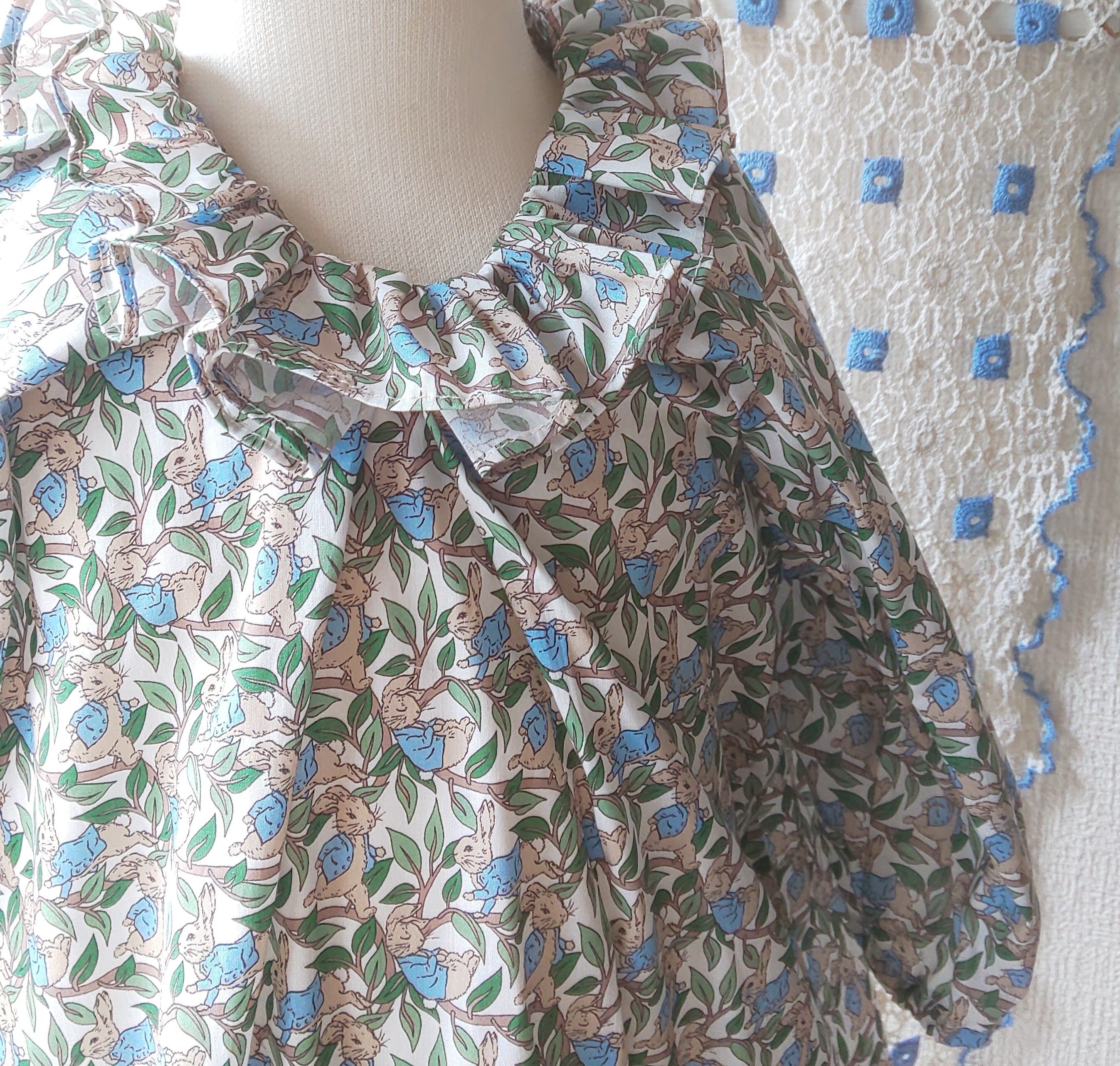 とってもかわいく仕上がってきましたリバティの、ピーターラビット柄です。落ち着いたお上品な色調と永遠のキャラクターがこまかく配されたこのプリント、きっと生涯かわいいことでしょう。