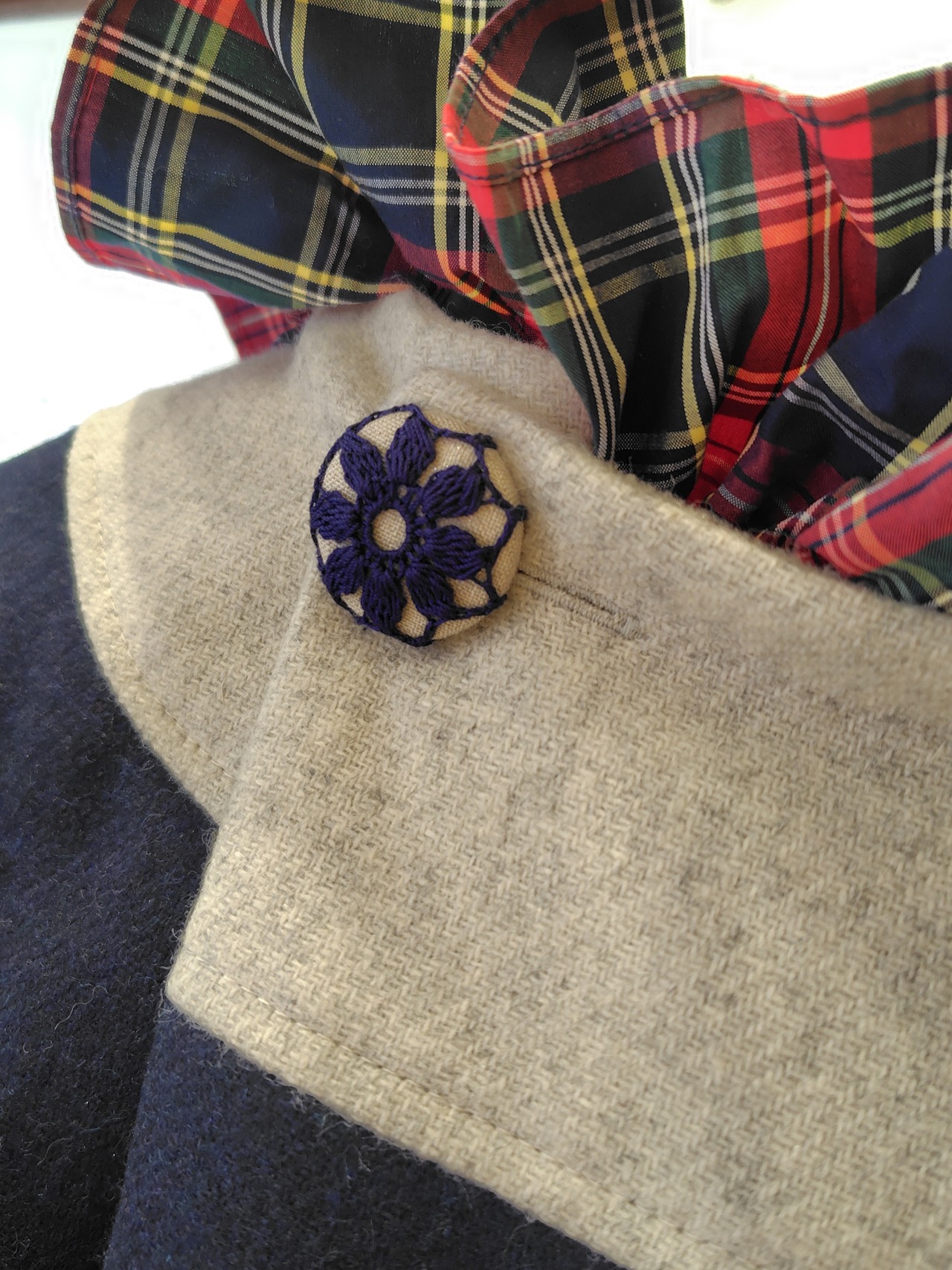 肘の上で終わる丈なので、腕さばきがよく、縫い物や書き物、ちょっとした作業の邪魔になりません。